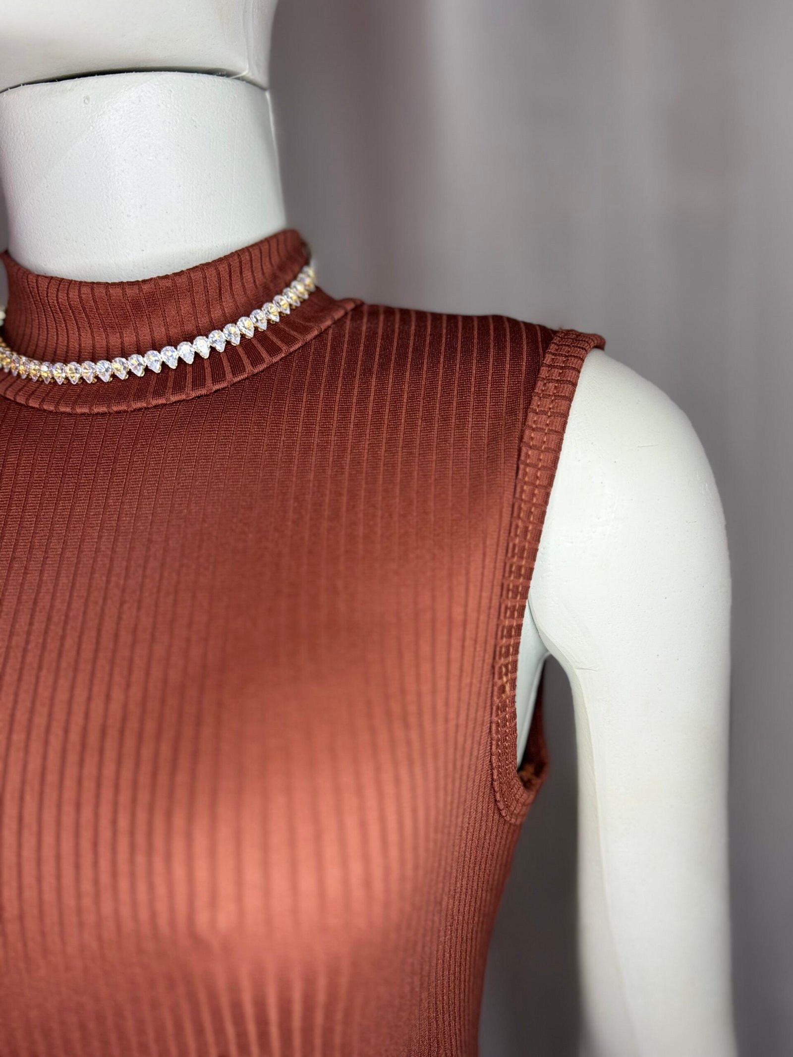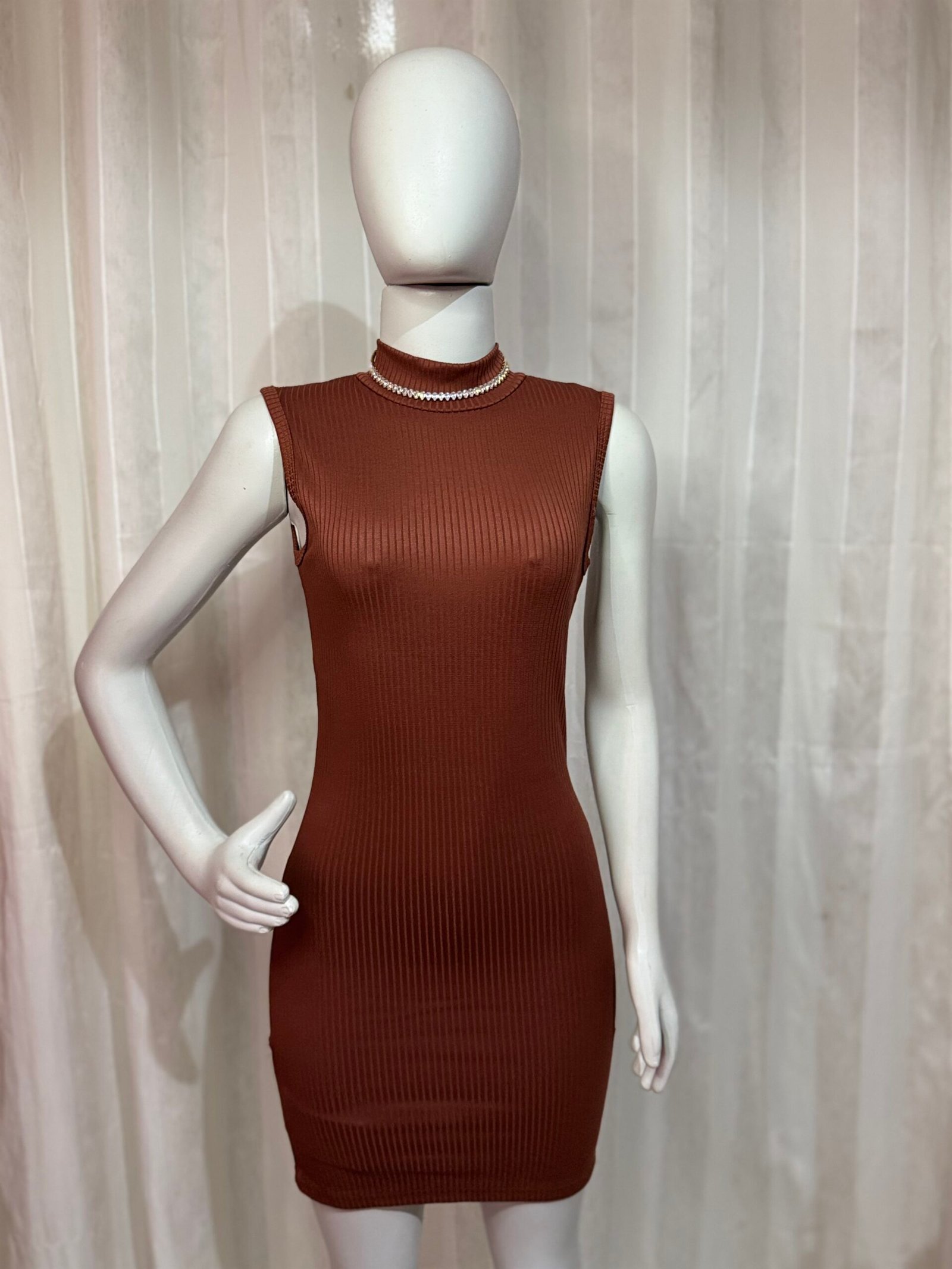 - Vestido canelado, com modelagem que valoriza a silhueta e tecido confortável. Moderno e marcante, perfeito para composições cheias de estilo e personalidade.